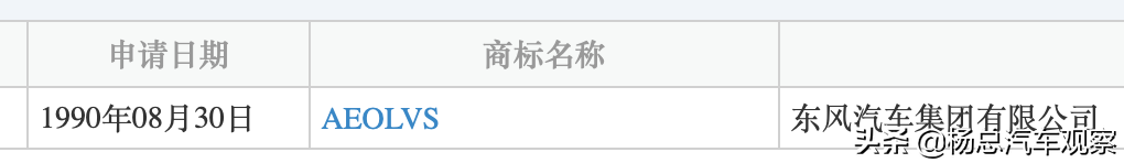 换一种方式,通过公司名称的搜索,杨总发现确实在 1990年东风汽车集团提交过一个英文注册商标,但是商标名称居然是AEOLVS,与AEOLUS有一个字母之差,打开以后又成了AEOLUS字样。